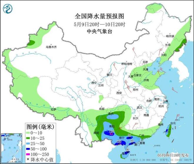 9日20时至10日20时,四川盆地南部、贵州大部、云南东部、湖南西部、广西西部和中南部、广东中西部和东南沿海地区、海南岛、岛以及吉林东部等地部分地区有中到大雨。温馨提示:华南东部和南部雨势较强,且多强对流天气,公众需注意防范道路湿滑、能见度降低等对交通出行的不利影响。